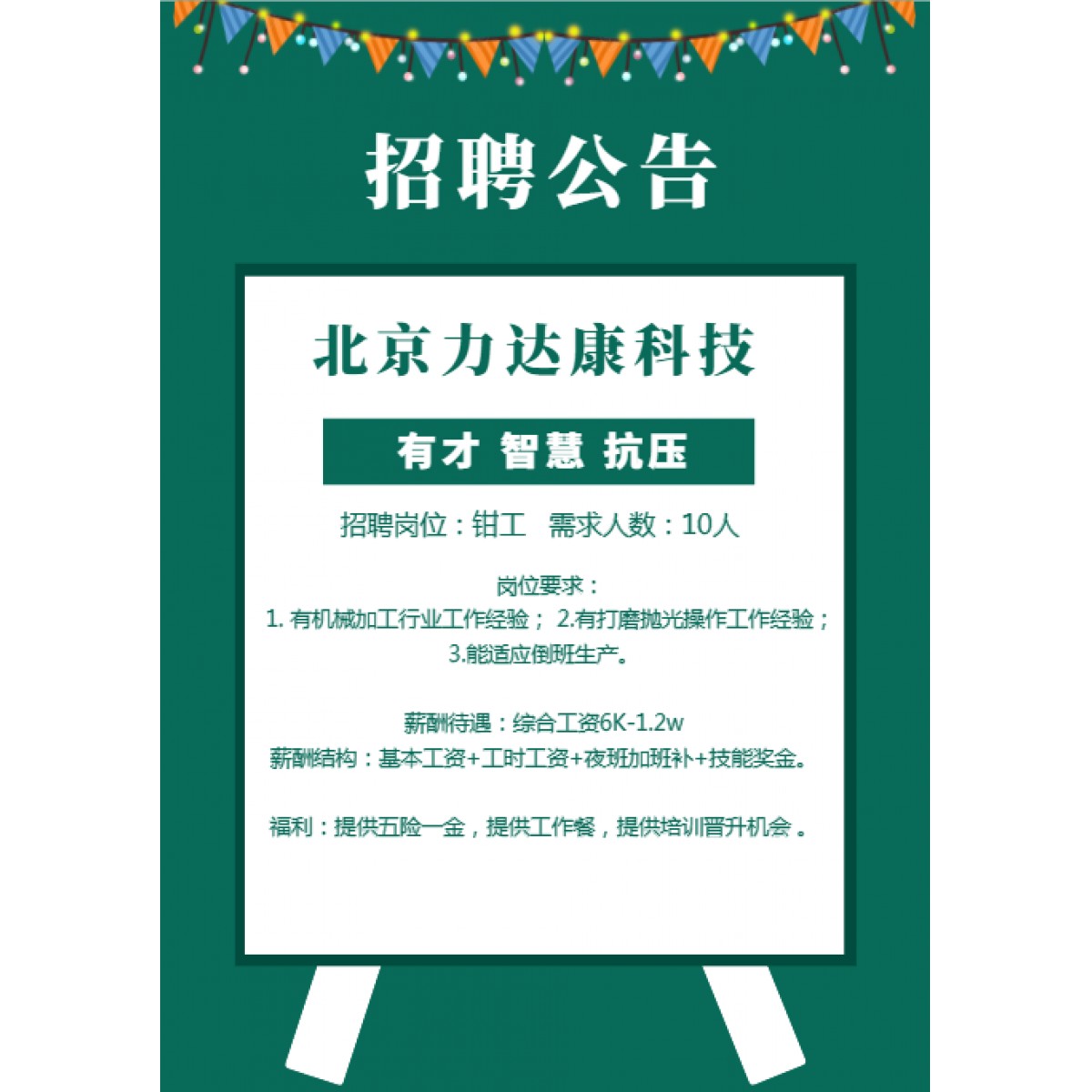 崗位:鉗工 需求人數:10人