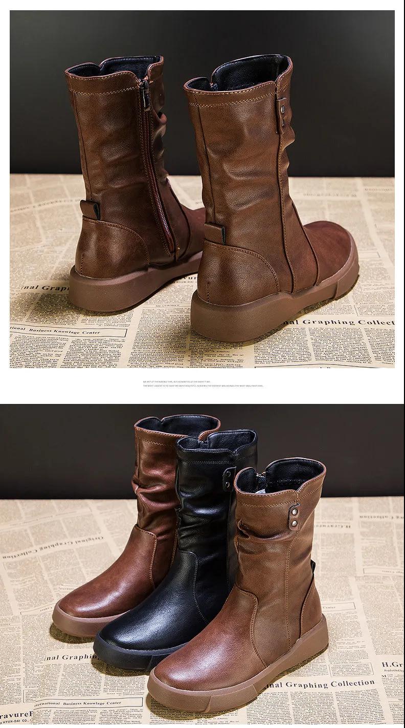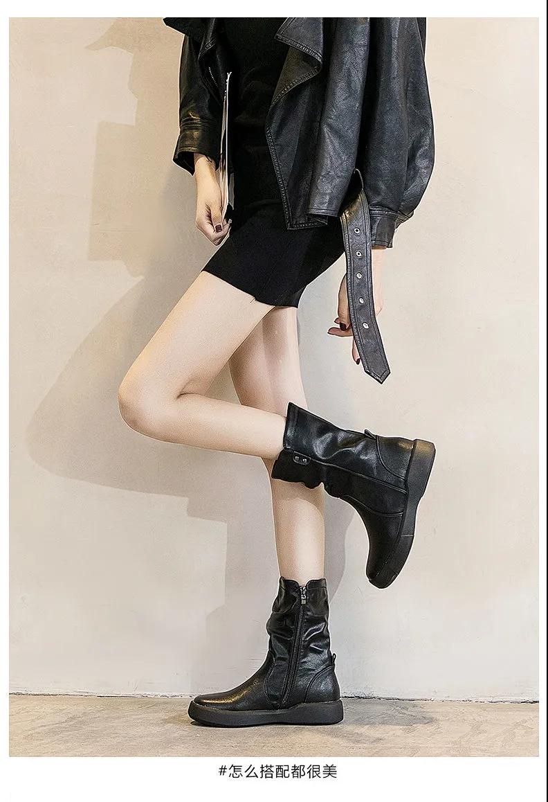 商品名稱:2020秋季新款馬丁靴女英倫風(fēng)平底加絨瘦瘦靴百搭休閑中筒靴子女冬