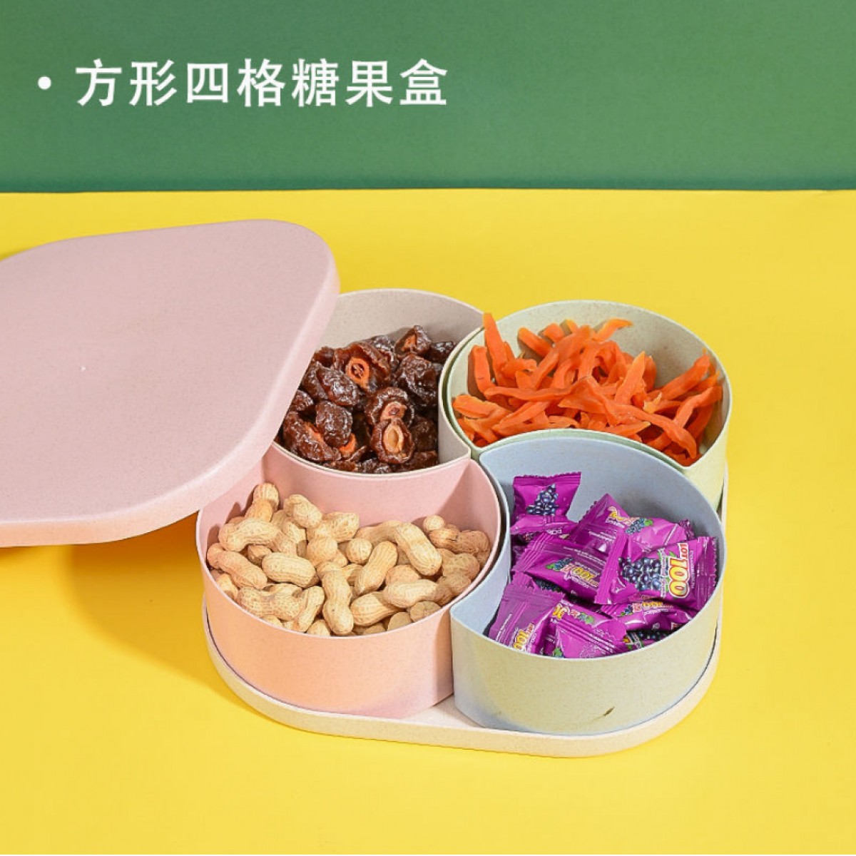 糖果盒旋轉(zhuǎn)花朵客廳家用干果堅果零食盒帶蓋分格茶幾果盤多格果盒