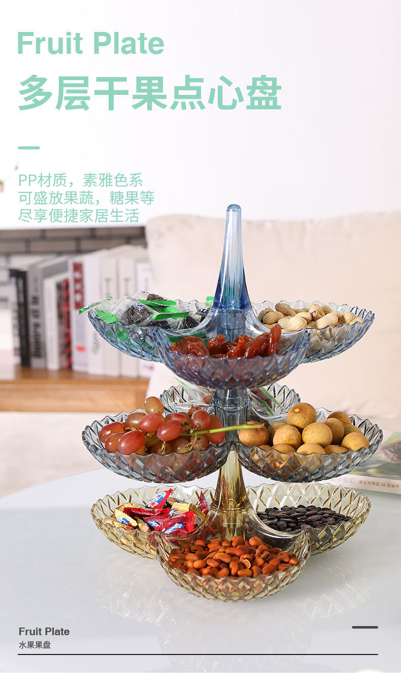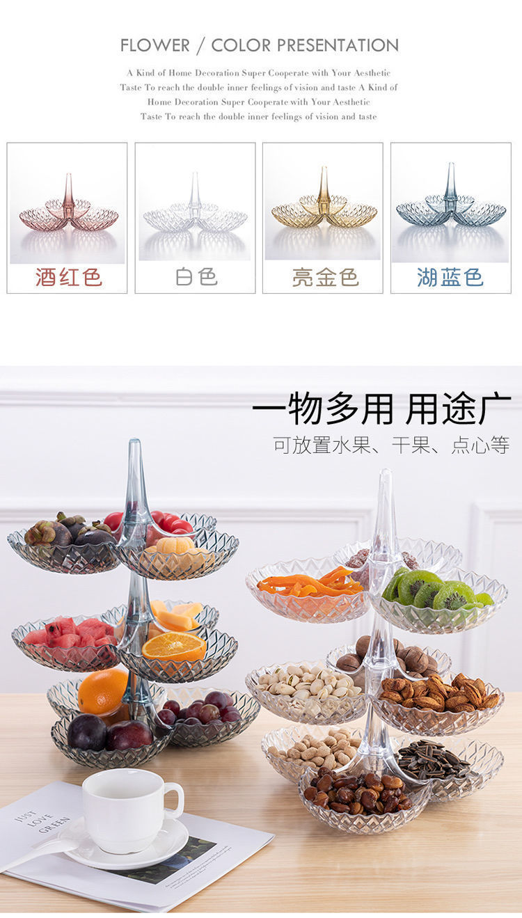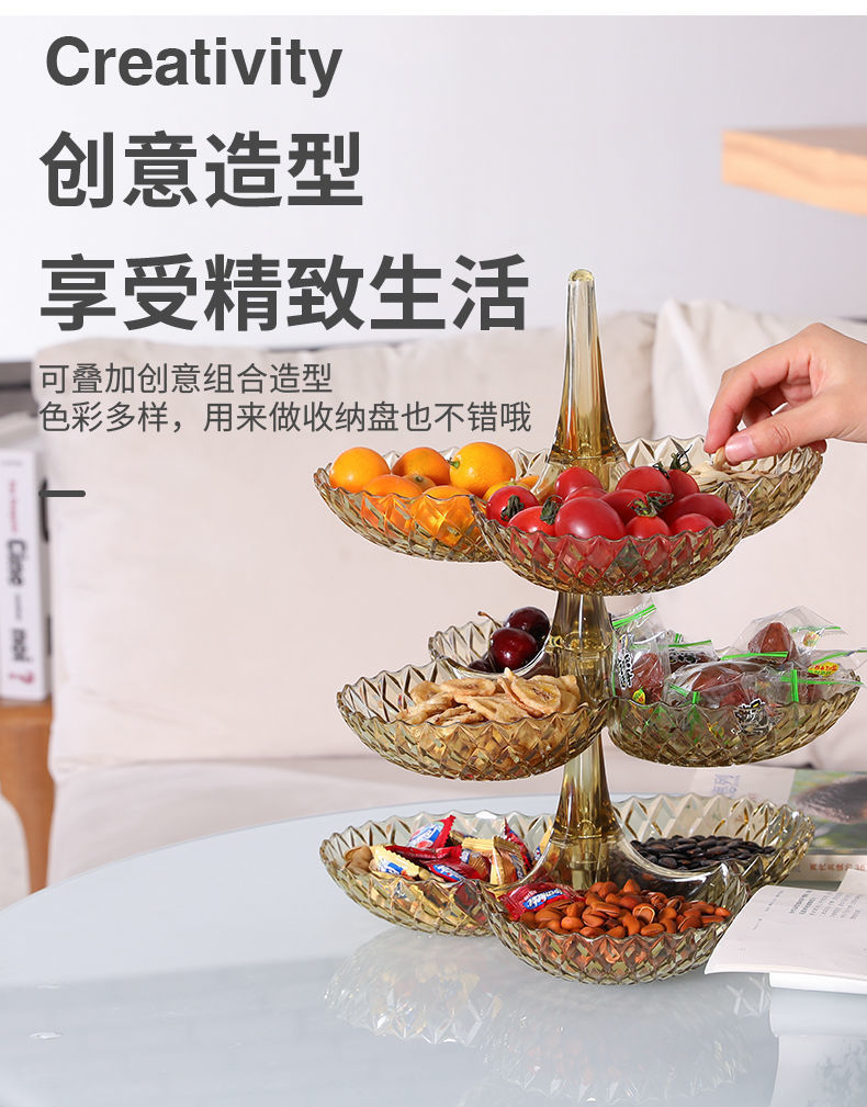 商品名稱:果盤零食客廳茶幾網(wǎng)紅創(chuàng)意時尚塑料多層水果盤家用新款高檔糖果盤