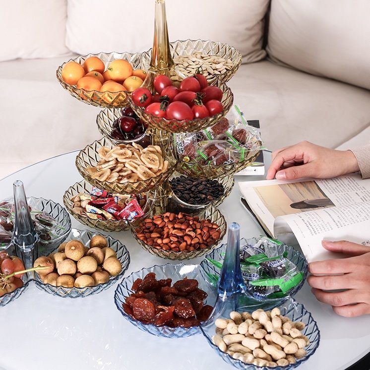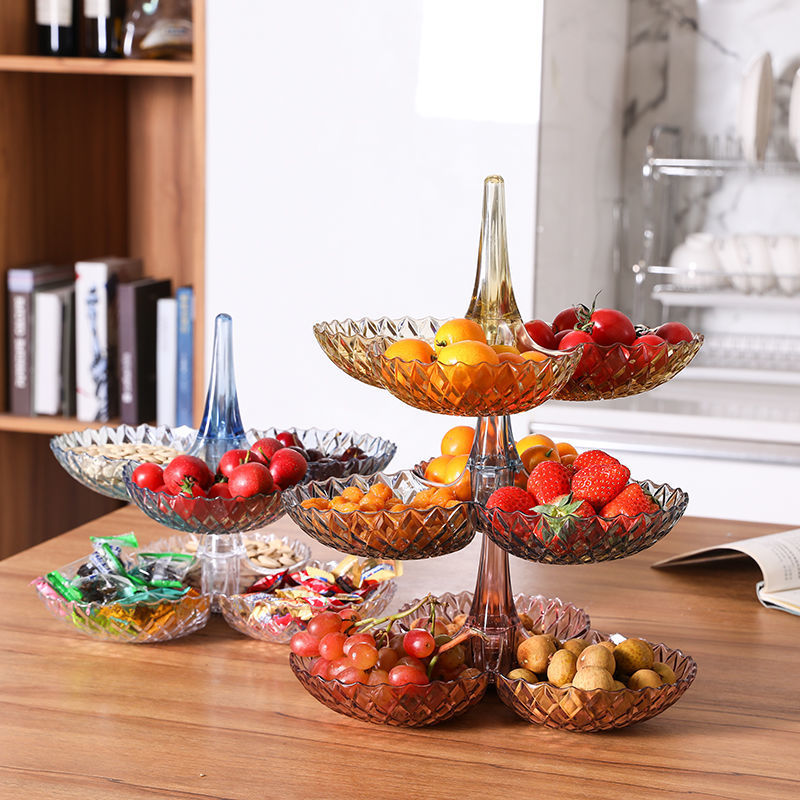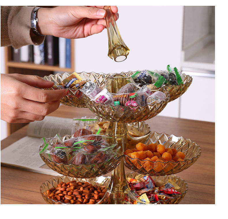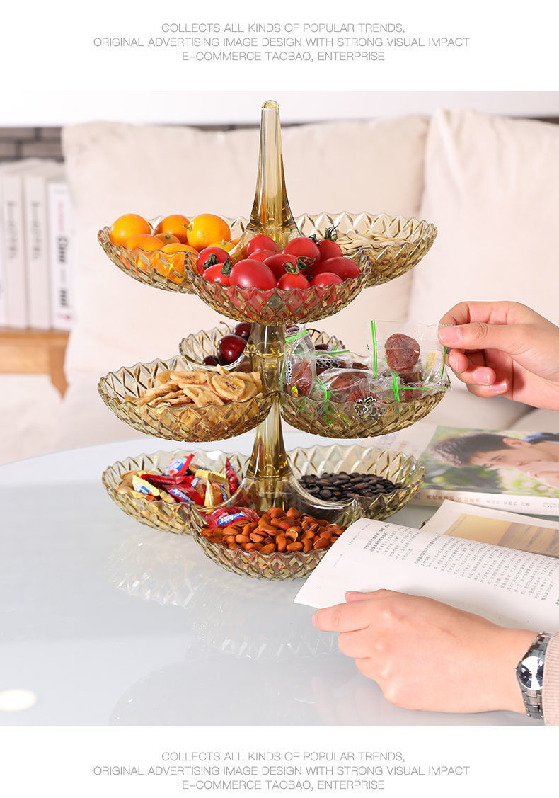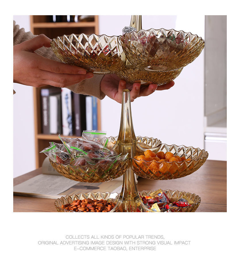 商品名稱:果盤零食客廳茶幾網(wǎng)紅創(chuàng)意時尚塑料多層水果盤家用新款高檔糖果盤
