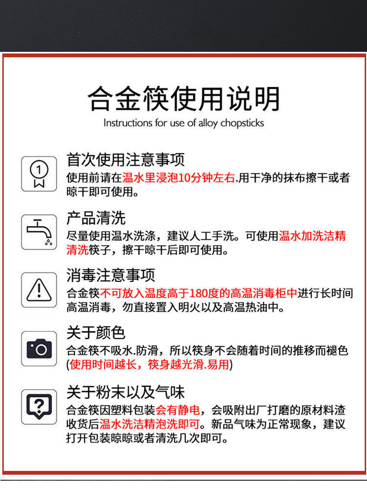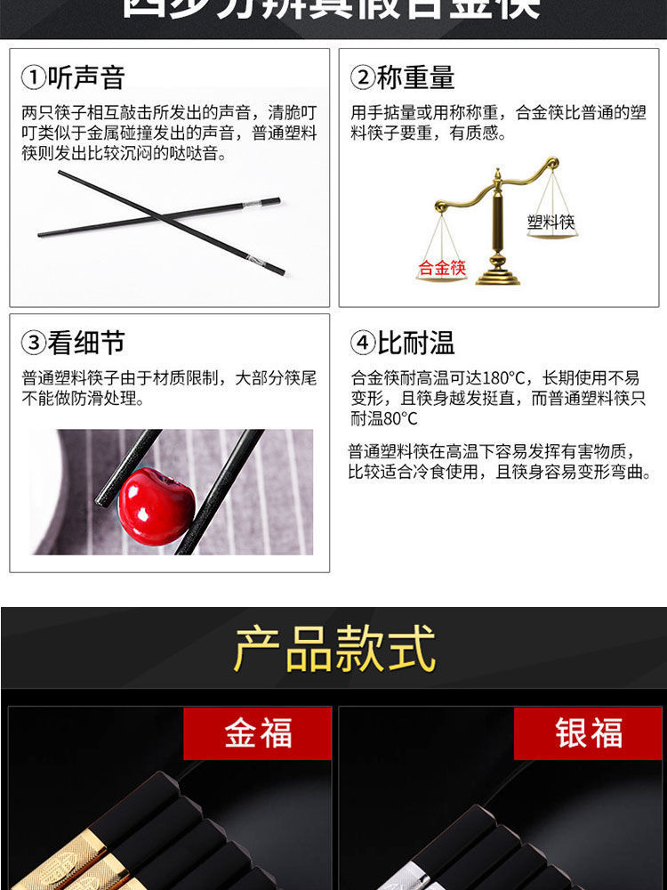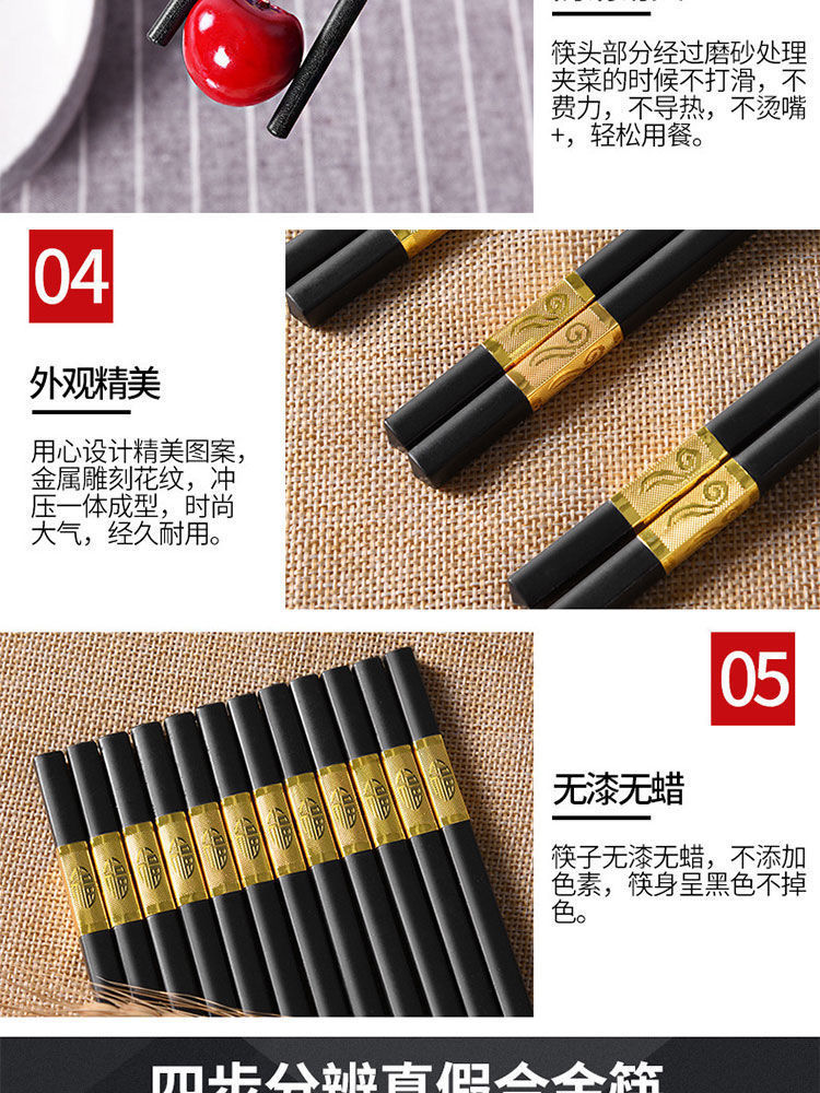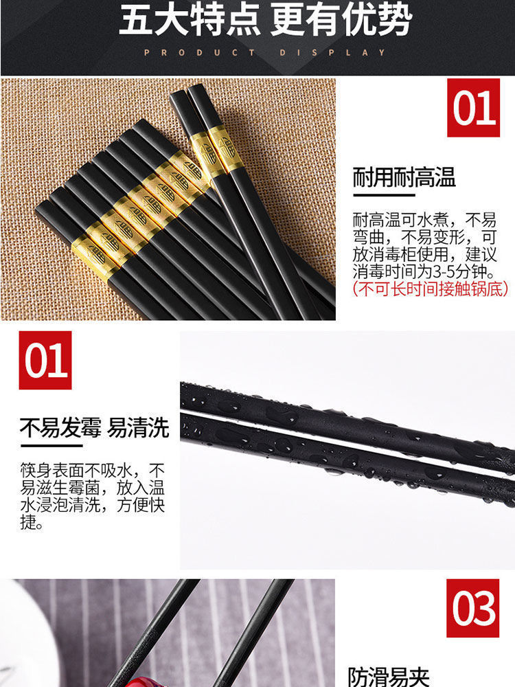 商品名稱:【耐高溫不發(fā)霉】筷子家用高檔防霉防滑無(wú)漆合金耐高溫新款家庭裝