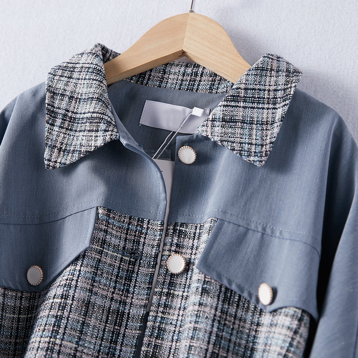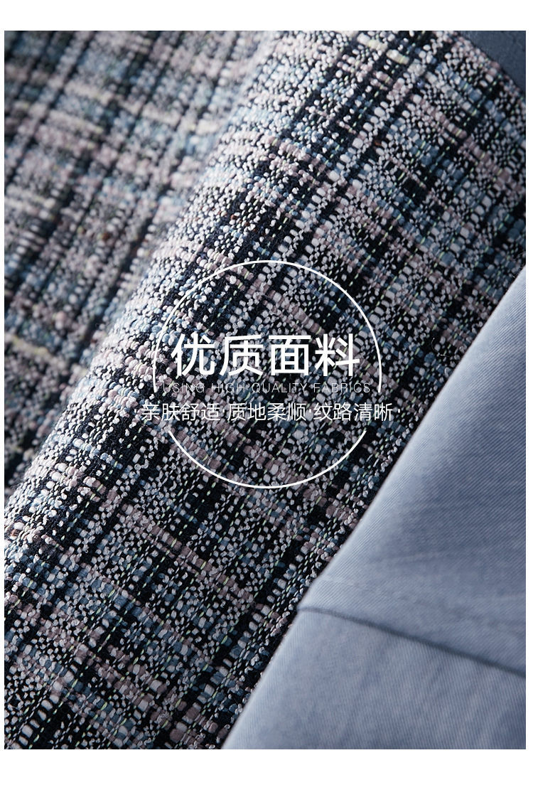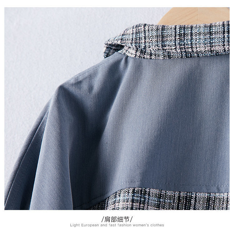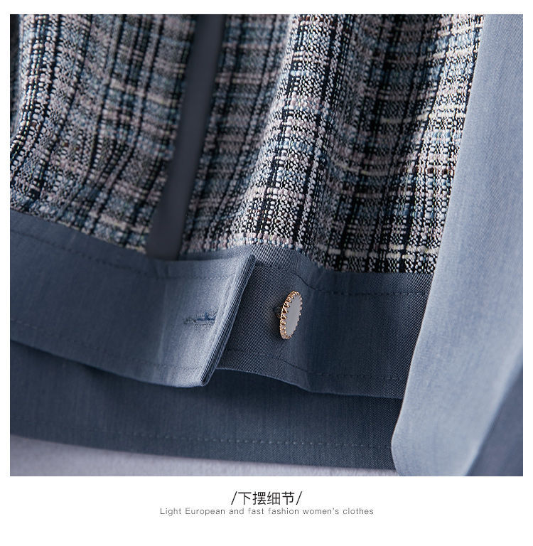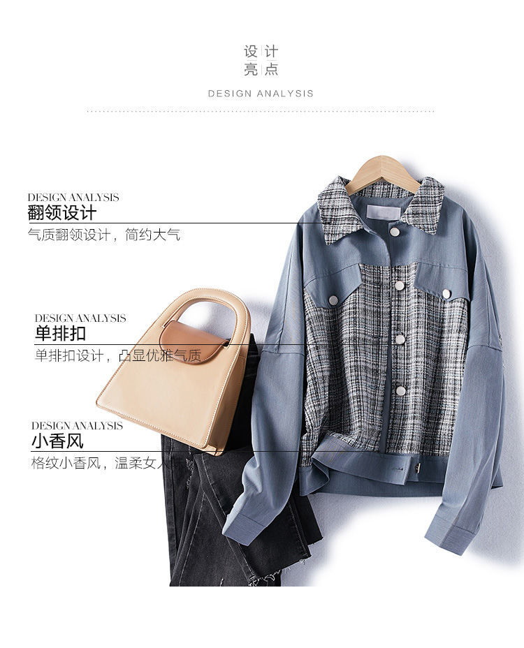 商品名稱:2021年春季新款女款時尚簡約百搭顯瘦純色拼接格紋小香風(fēng)外套
