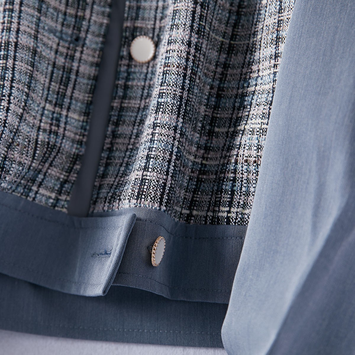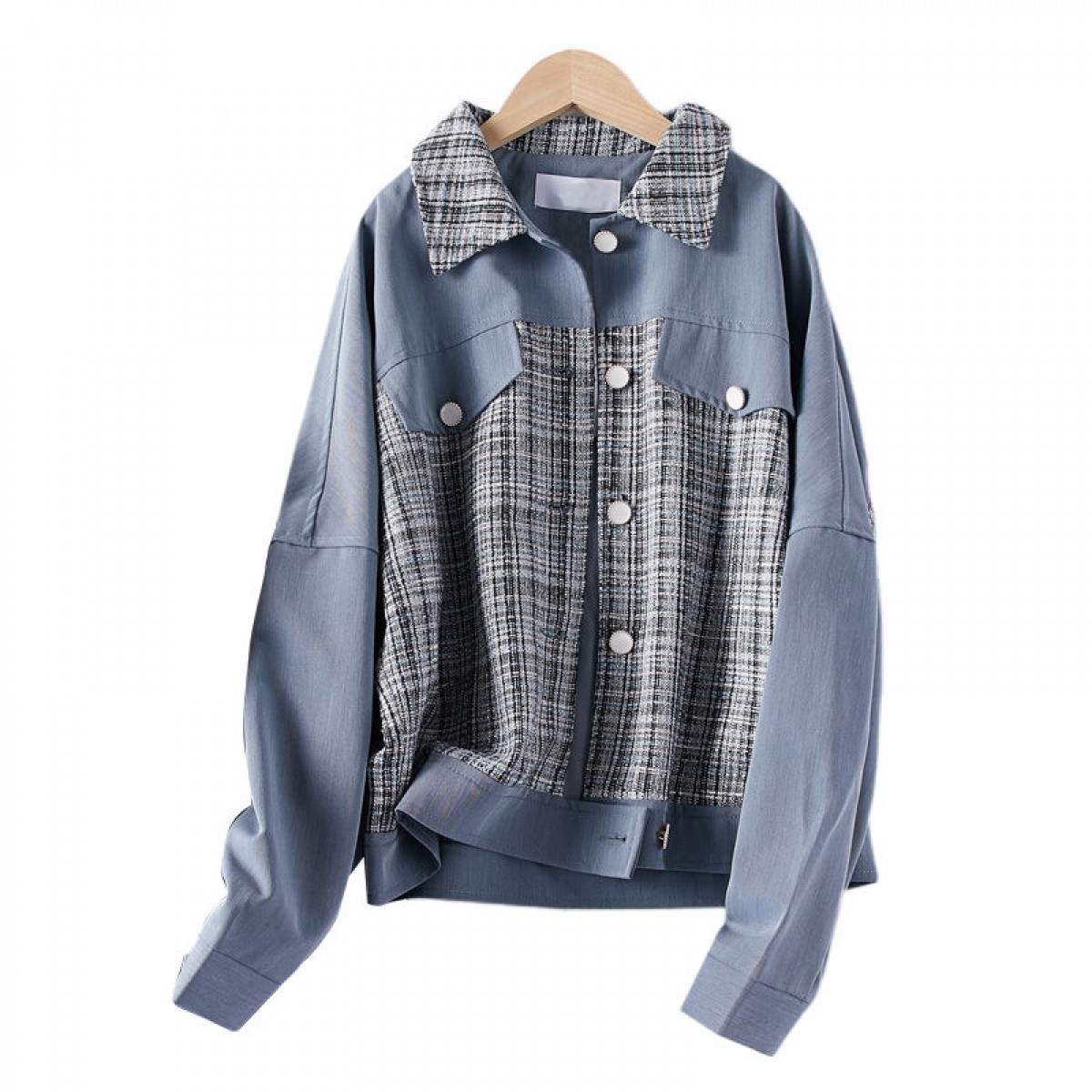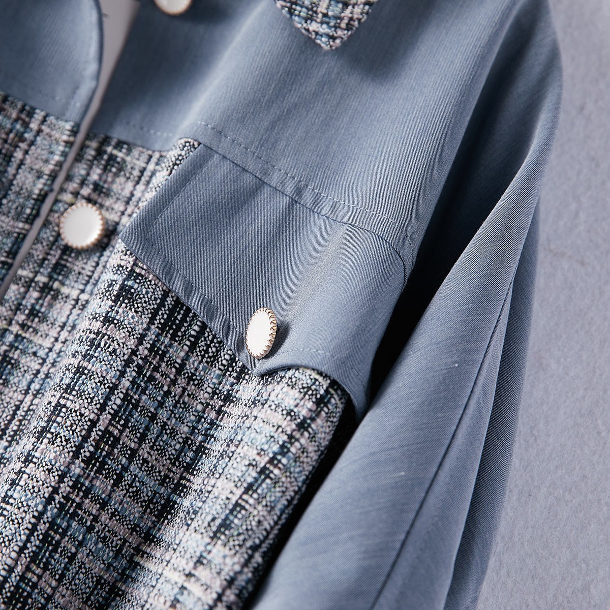 商品名稱:2021年春季新款女款時尚簡約百搭顯瘦純色拼接格紋小香風(fēng)外套