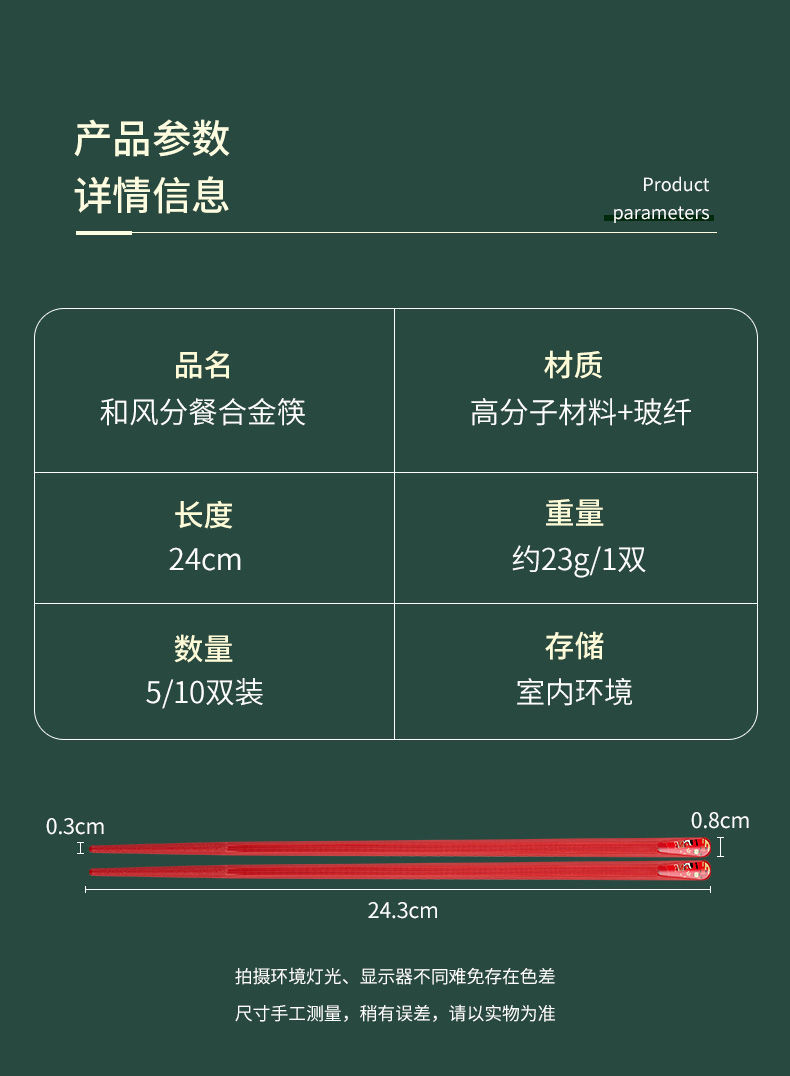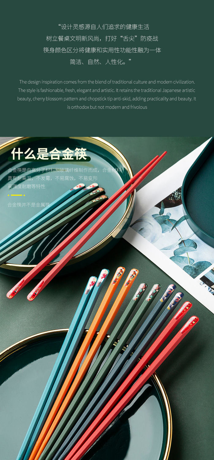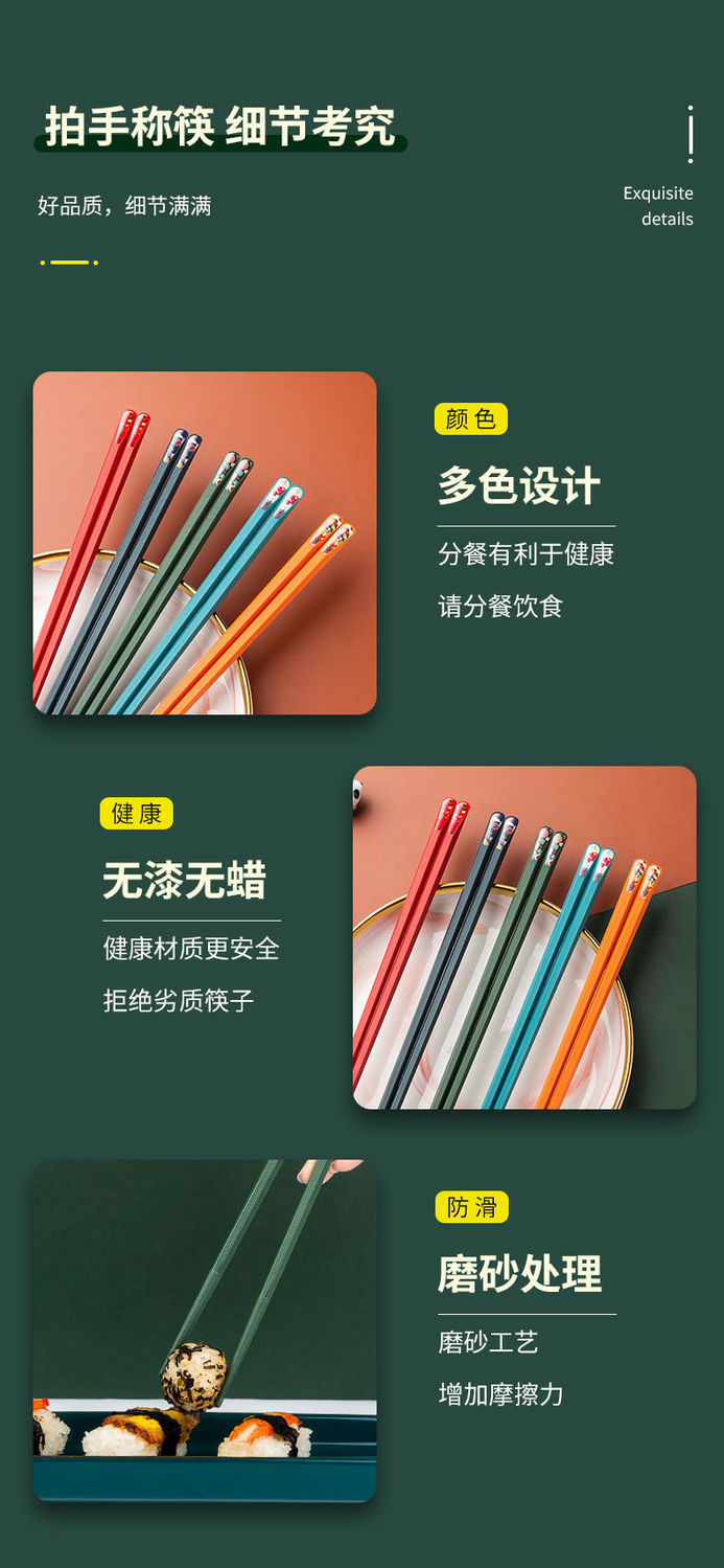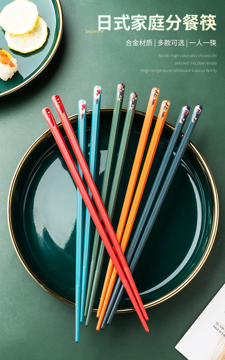 商品名稱:筷子家用高檔一人一筷防滑防霉耐高溫合金筷日式家庭分用筷子套裝