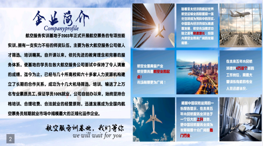 本公司與各大航空服務(wù)公司聯(lián)合開辦、定人定崗委培,面向全國擇優(yōu)錄取學(xué)員,經(jīng)專業(yè)技能強(qiáng)化實(shí)訓(xùn),直接輸送到北京各大航空服務(wù)公司從事航空票務(wù)相關(guān)工作。