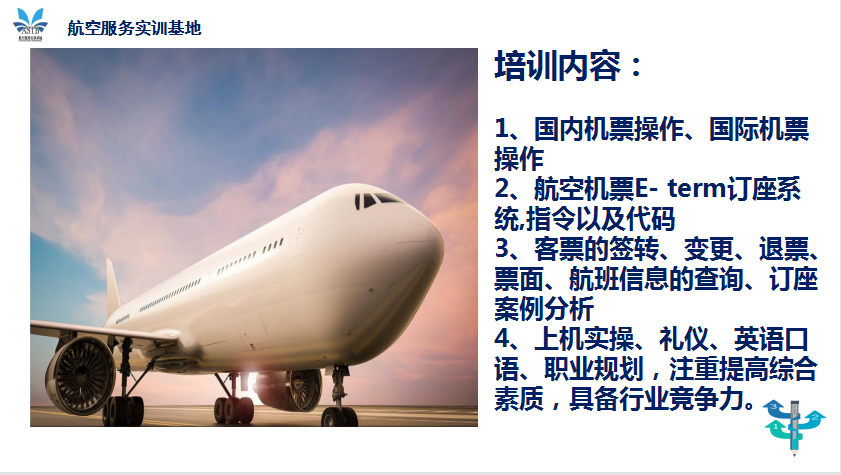 授課內(nèi)容:民航客貨運(yùn)輸業(yè)務(wù)代理知識、民航財務(wù)基礎(chǔ)業(yè)務(wù)知識、民航客貨運(yùn)輸法律法規(guī)知識、民航電腦定票系統(tǒng)操作知識、航班代碼知識、地區(qū)地理常識、禮儀等。