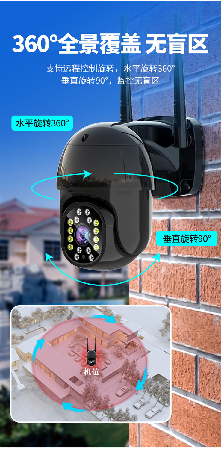 360度全景無線監(jiān)控?cái)z像頭室外防水家用視頻監(jiān)控器連手機(jī)遠(yuǎn)程高清