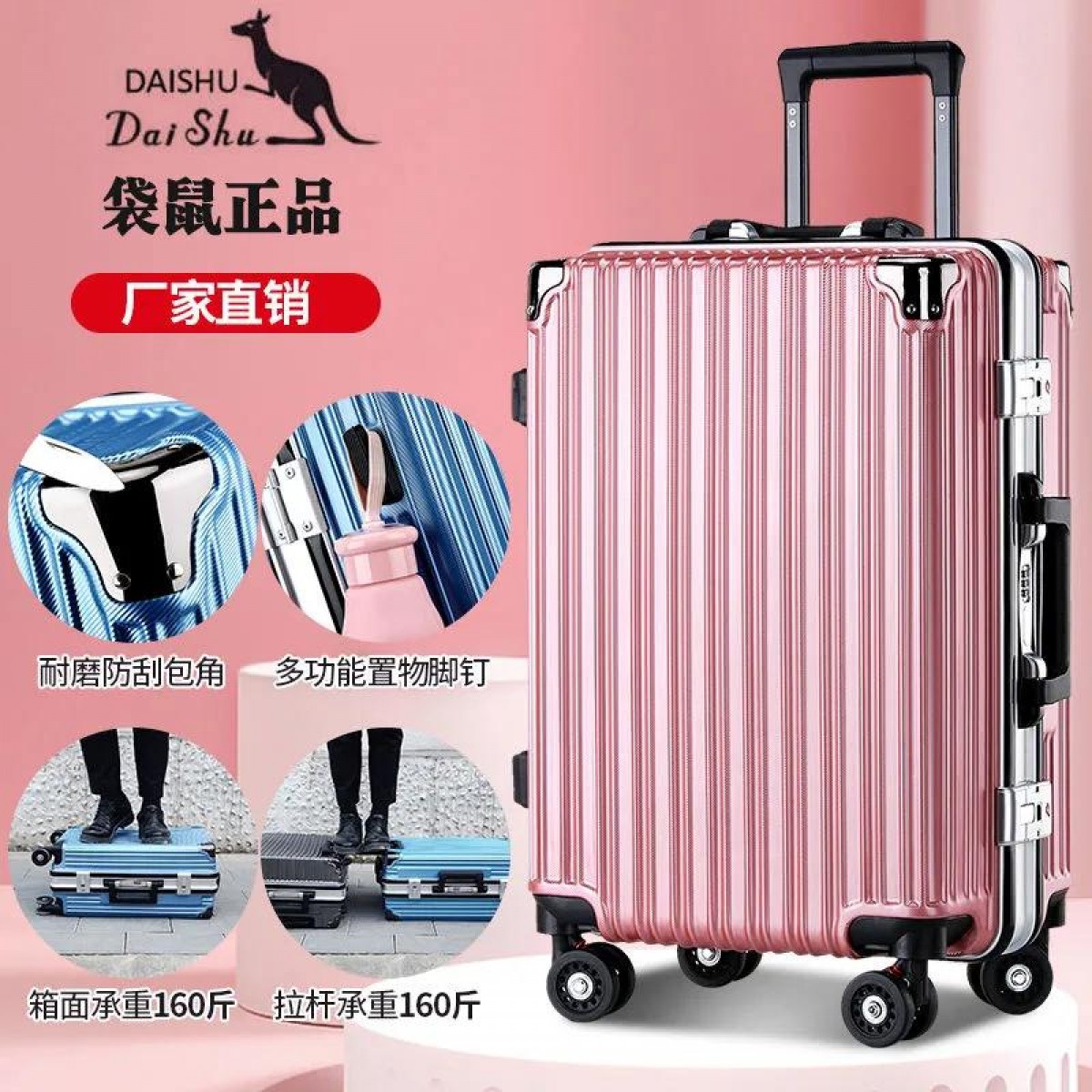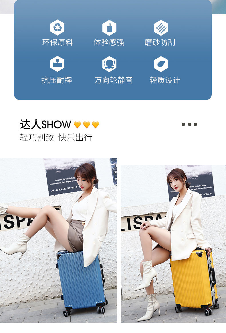 商品名稱:袋鼠行李箱男女學(xué)生韓版密碼箱旅行箱萬向輪皮箱大容量鋁框拉桿箱