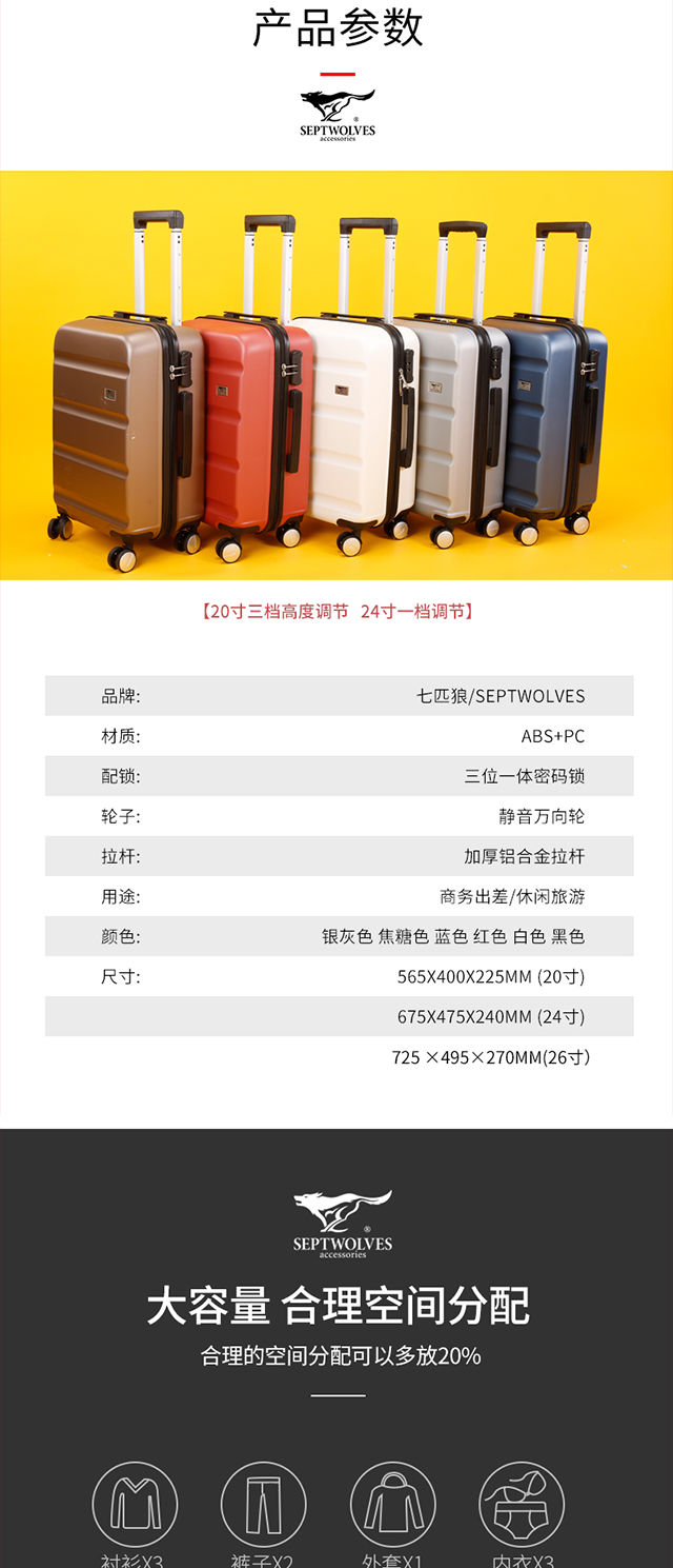 商品名稱:七匹狼行李箱拉桿箱女韓版小清新網(wǎng)紅旅行箱男大學(xué)生密碼箱登機(jī)箱