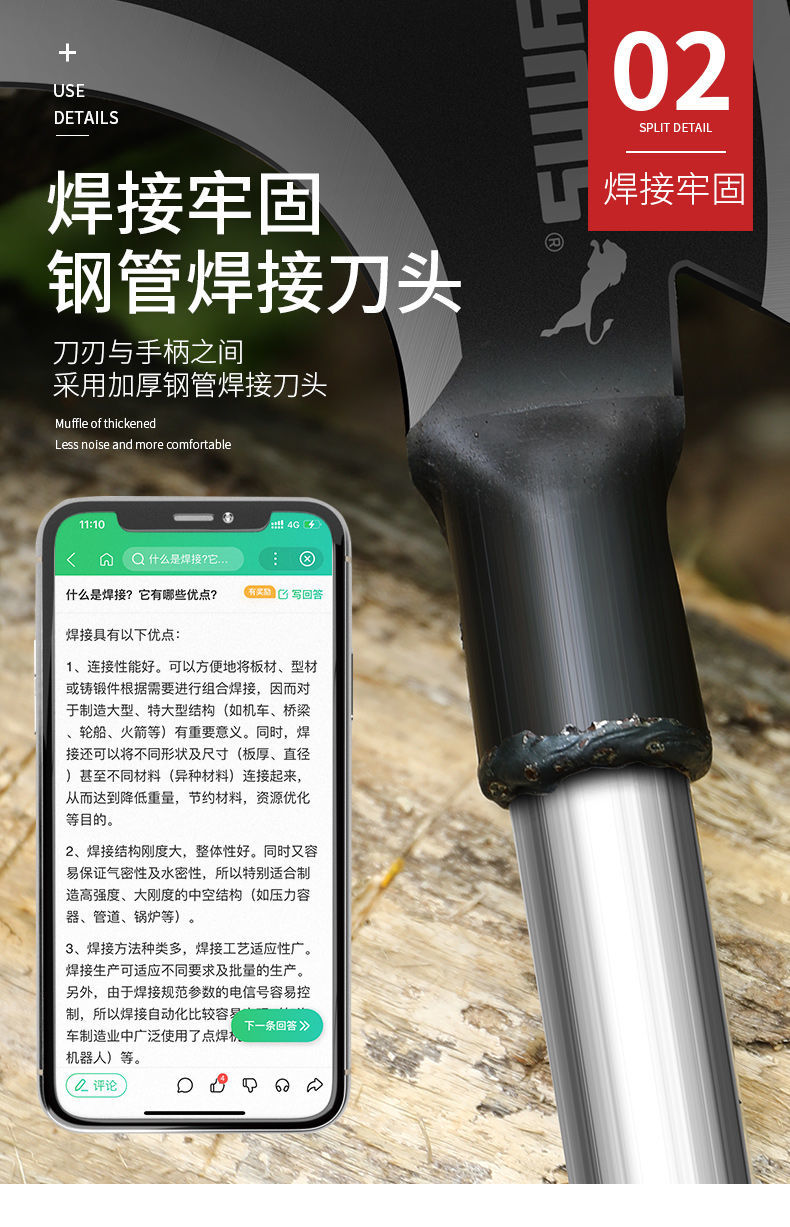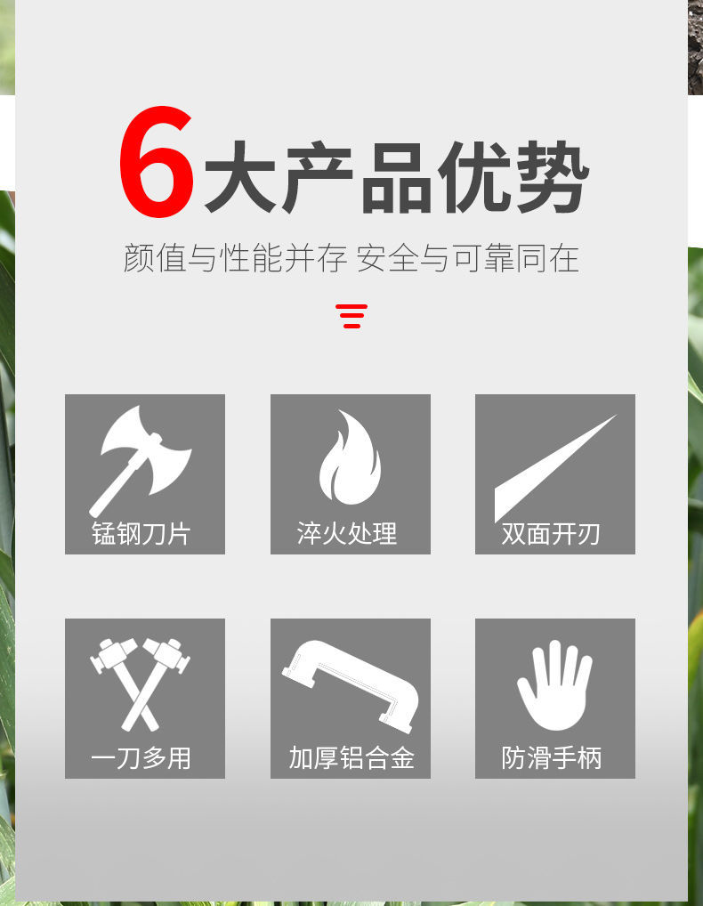 商品名稱:高錳鋼雙砍鐮刀斧頭砍柴砍樹割草彎刀農(nóng)用工具大全除草神器