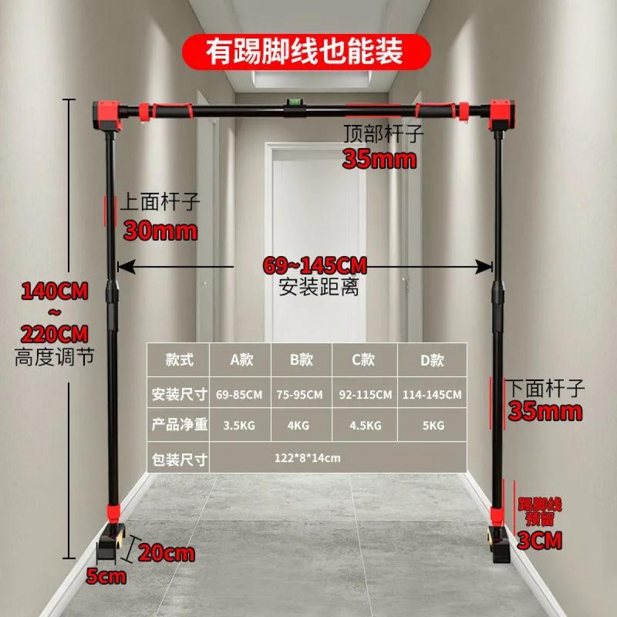 商品名稱:室內(nèi)單杠成人兒童健身單桿門框門上家用引體向上免打孔墻上伸縮桿