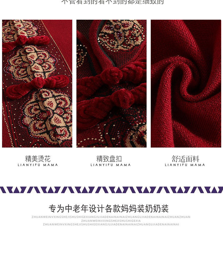 商品名稱:中老年加絨毛衣唐裝女媽媽裝上衣針織開衫秋冬裝保暖外套奶奶裝