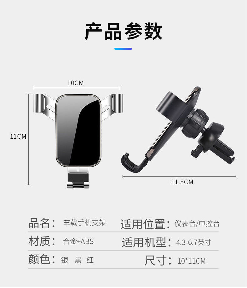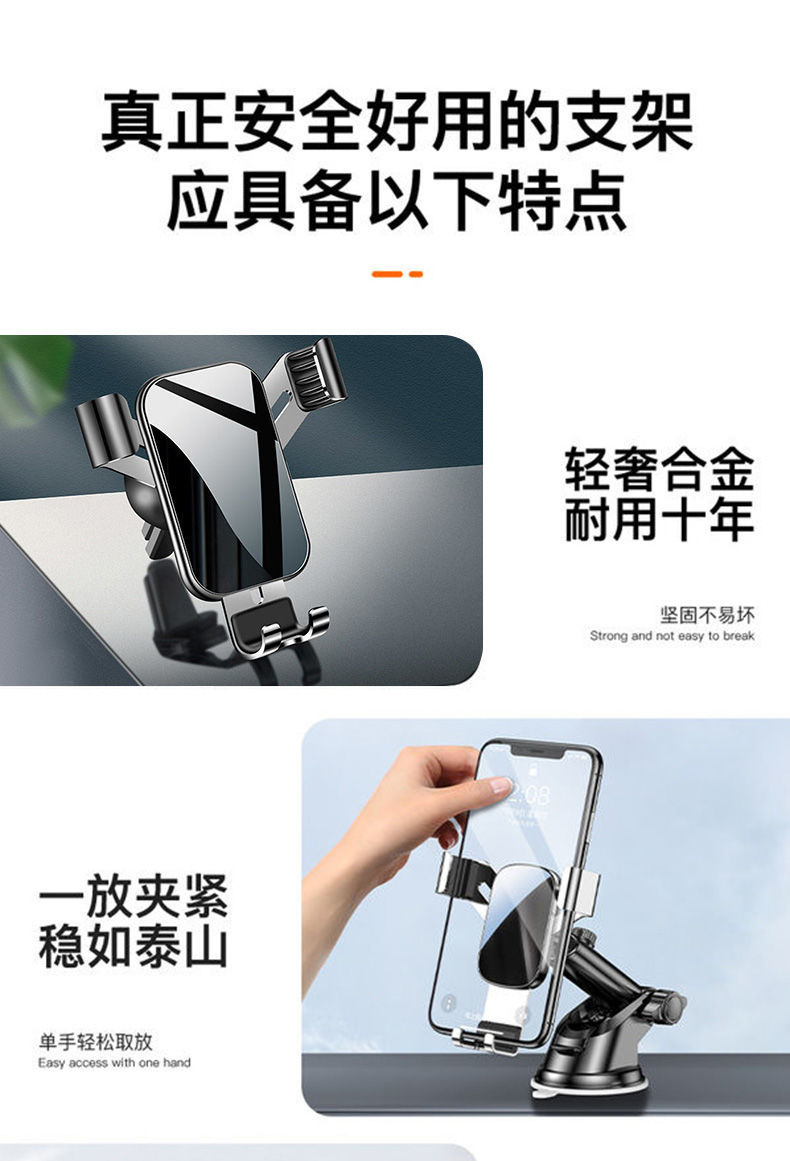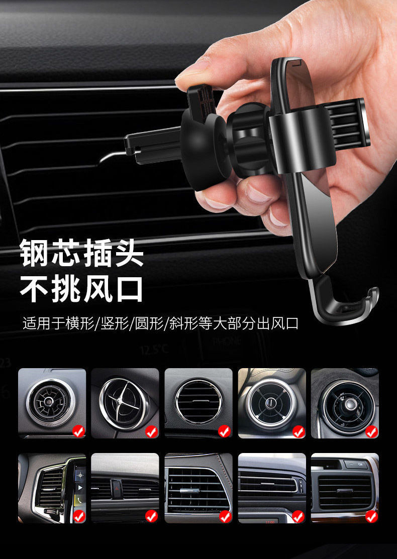 車載手機支架汽車重力感應(yīng)支撐架卡扣式多功能出風(fēng)口導(dǎo)航支架