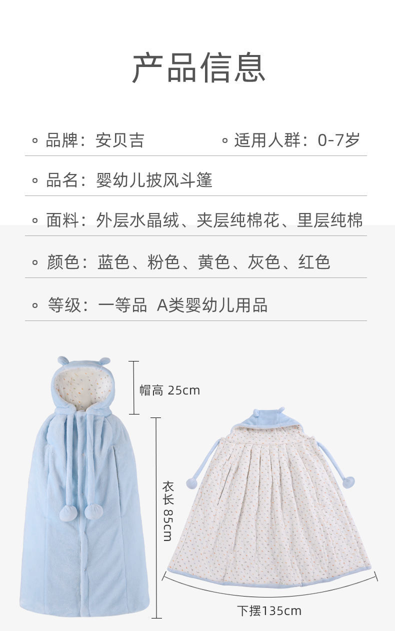 商品名稱:嬰兒披風秋冬加厚兒童斗篷男女寶寶新生嬰幼兒外出防風保暖外套