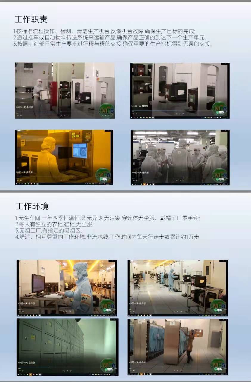 招聘要求:男女不限,身高:女158以上,男165以上,年齡16-40歲,初中以上學(xué)歷,認(rèn)識26個(gè)字母,站立崗,穿連體無塵服,能倒夜班,每月?lián)Q班1次。