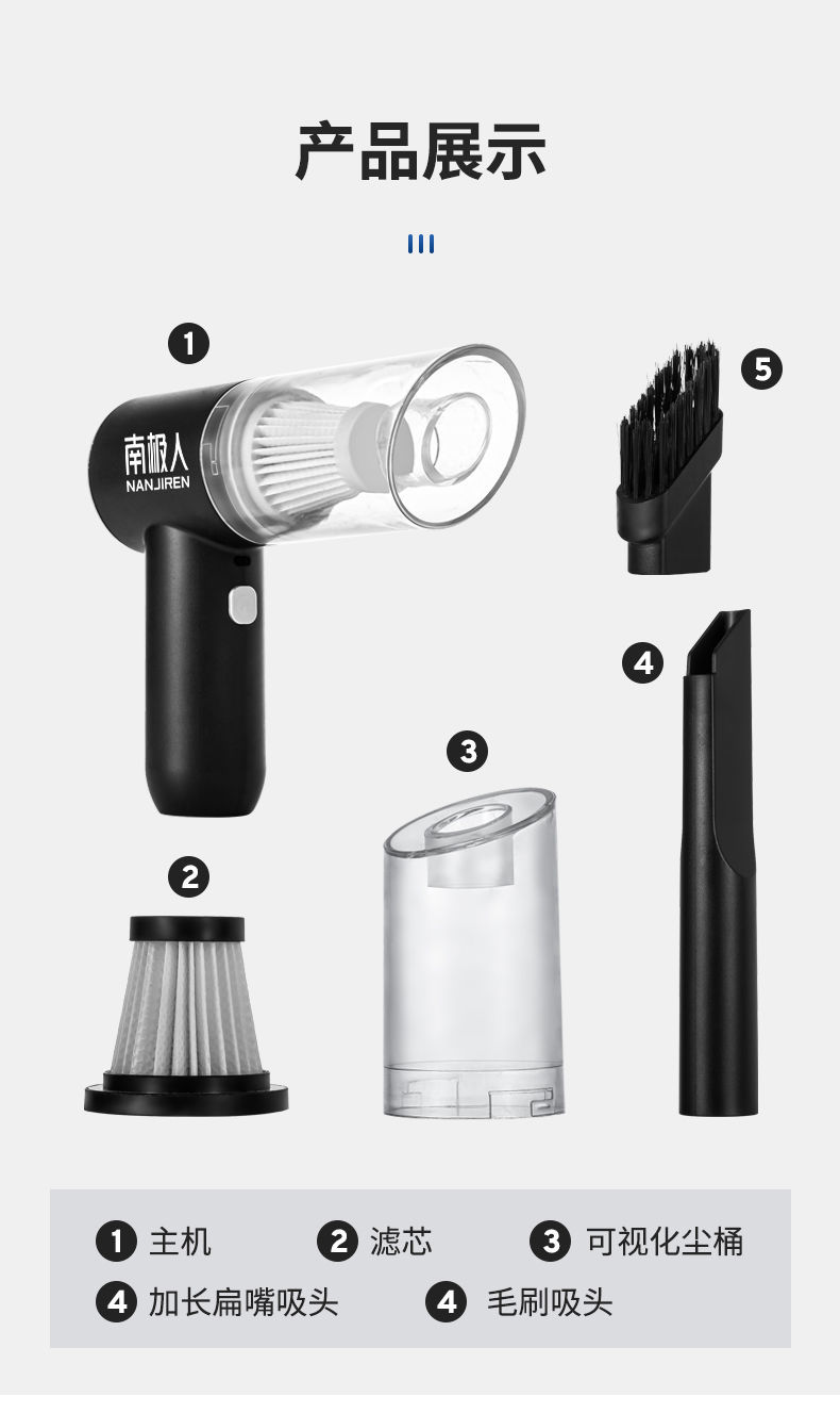 商品名稱:南極人無線車載吸塵器強(qiáng)力大功率充電家車兩用室內(nèi)手持汽車迷你型