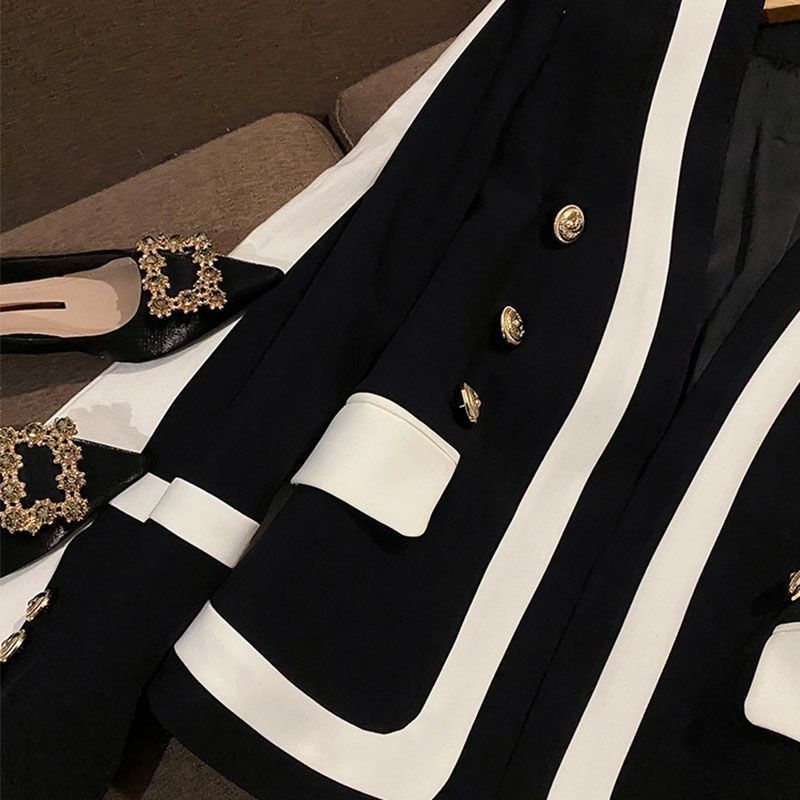 商品名稱:歐貨黑白撞色西裝女早秋新款高級感輕奢金屬排扣百搭小香風(fēng)外套