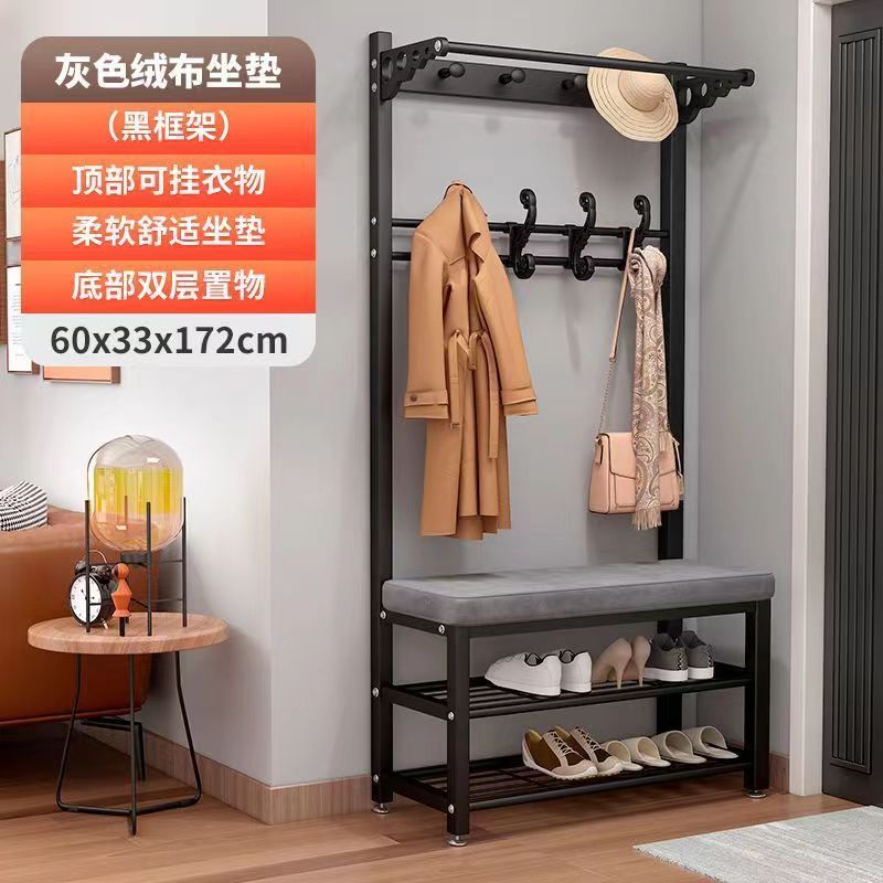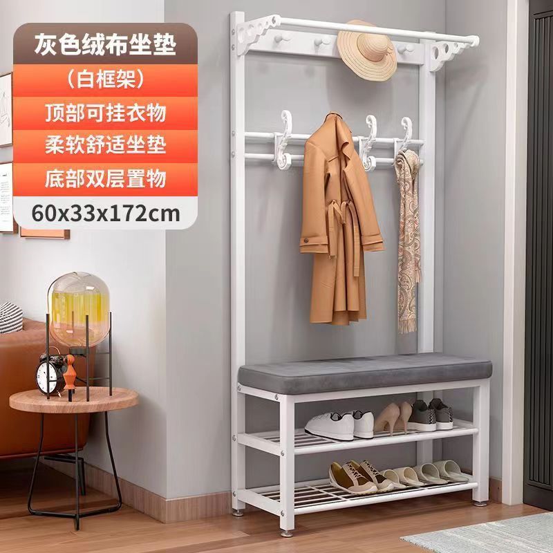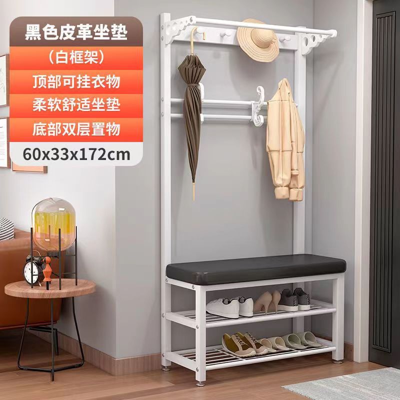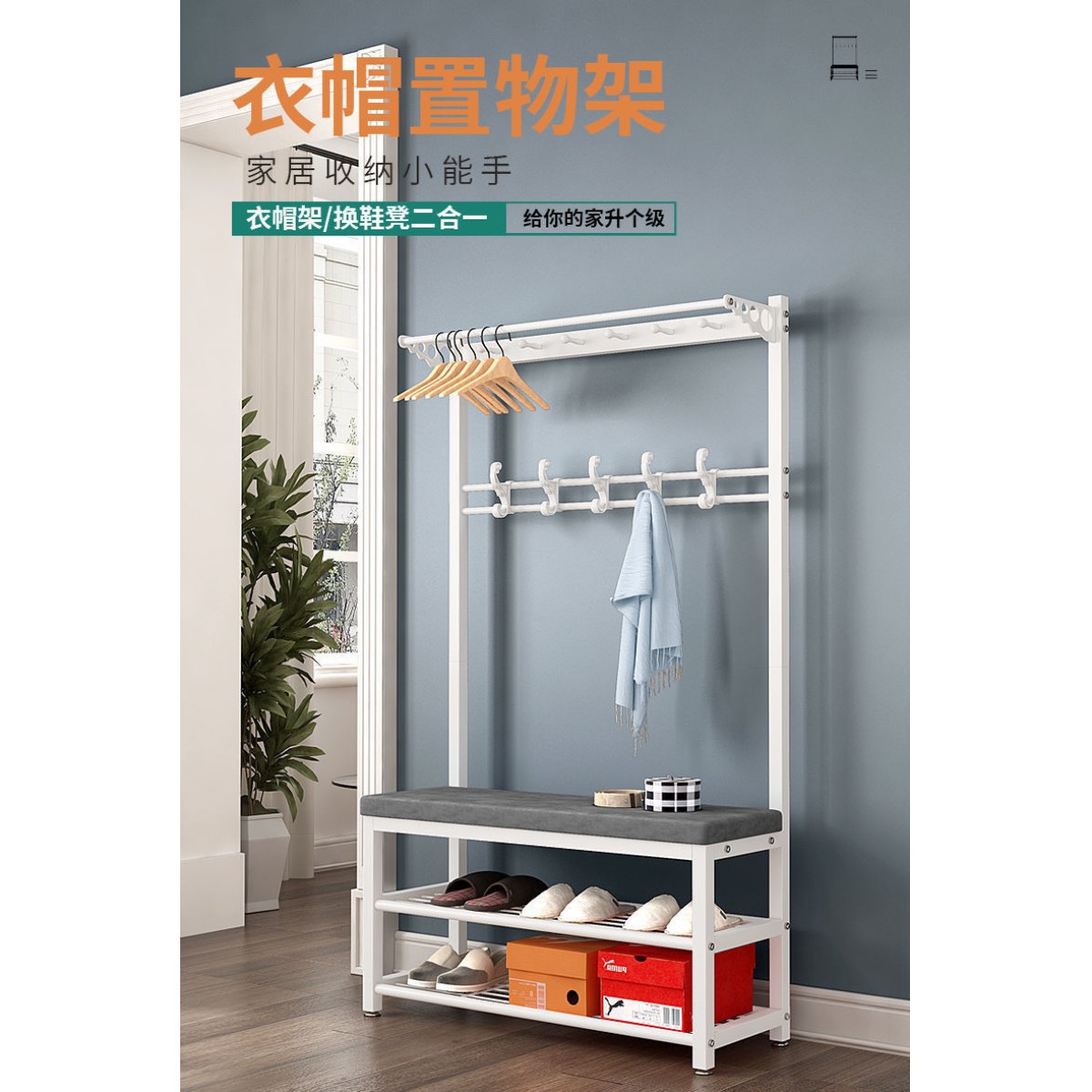 商品名稱:換鞋凳掛衣架一體鞋柜家用進(jìn)門口衣帽架小型玄關(guān)可坐軟包坐墊鞋架