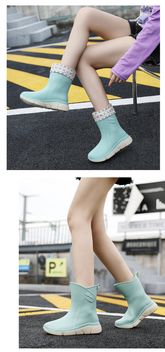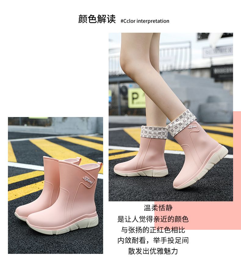 商品名稱:雨鞋女時(shí)尚款四季外穿韓版中筒防水防滑厚底水靴保暖水鞋廚房同款