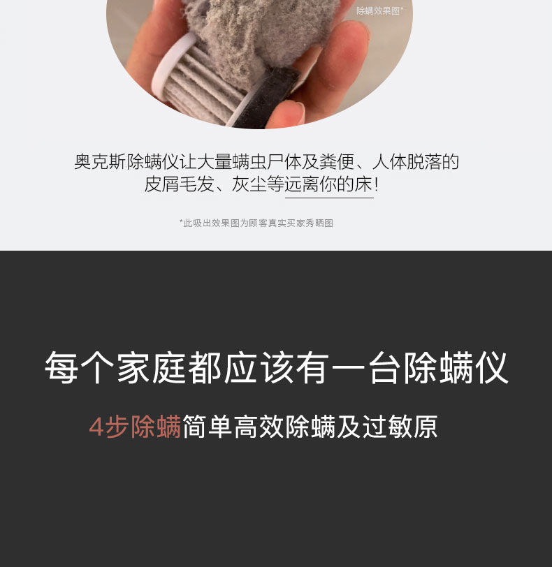 奧克斯除螨儀紫外線殺菌機(jī)家用床上去螨蟲(chóng)吸塵器床鋪除吸小型02A