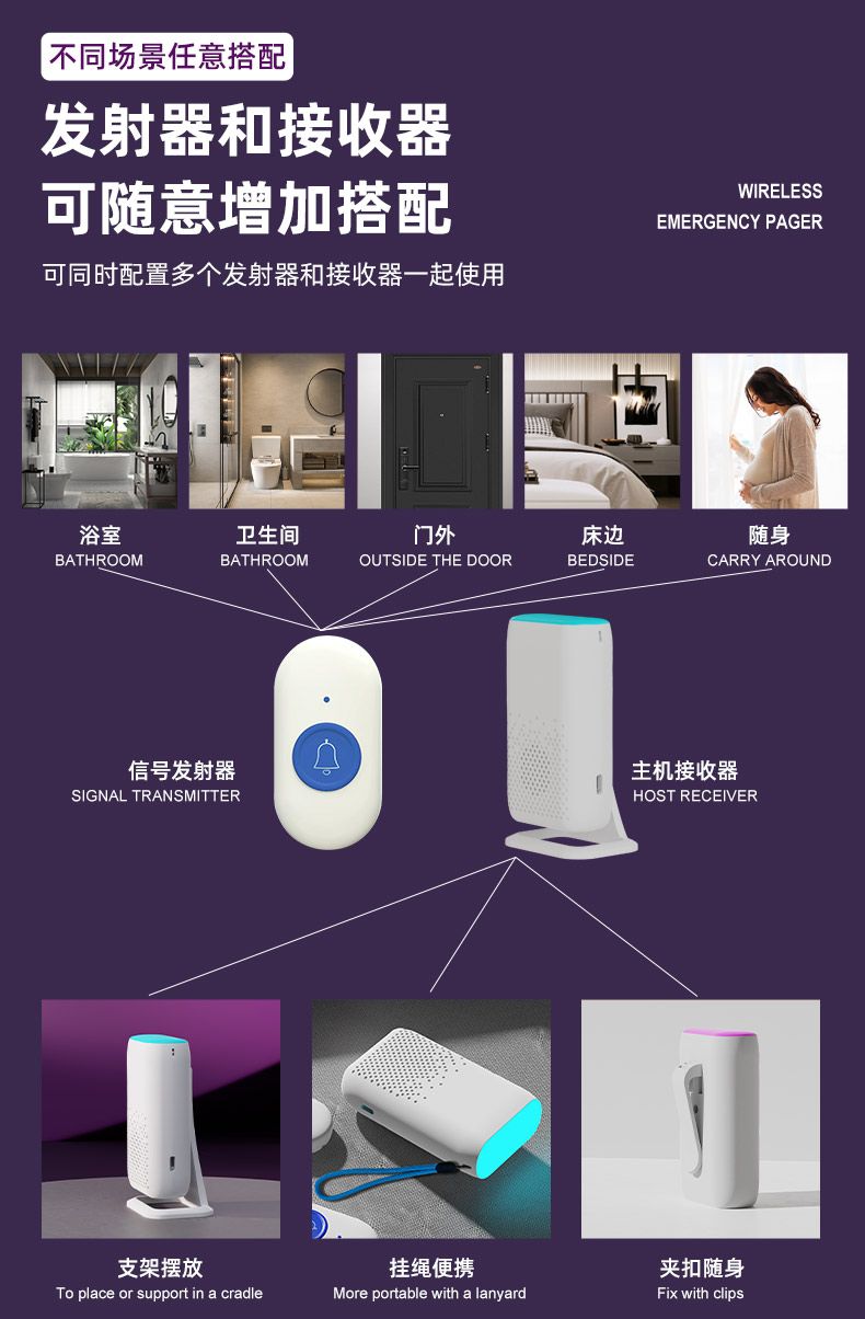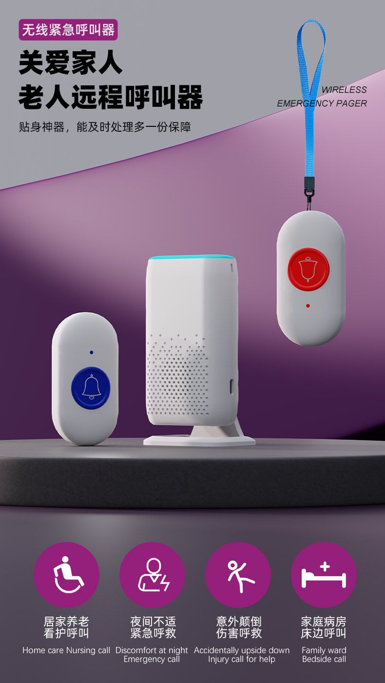 商品名稱:老人呼叫器無線家用病人門鈴遠(yuǎn)程遙控一鍵緊急報(bào)警求救平安鐘按鈴