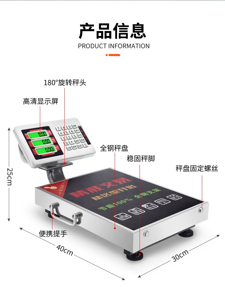 超然60kg電子秤150kg商家用臺(tái)秤精準(zhǔn)計(jì)價(jià)電子稱充電便攜手提磅秤