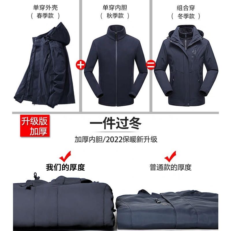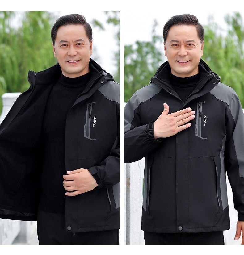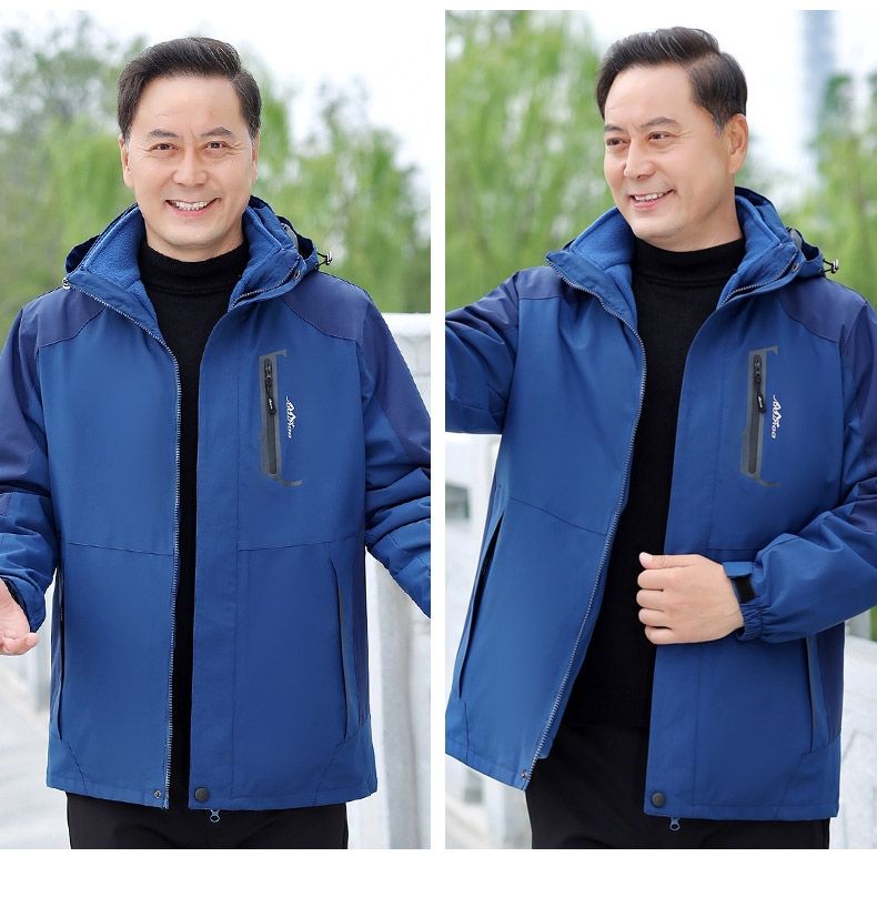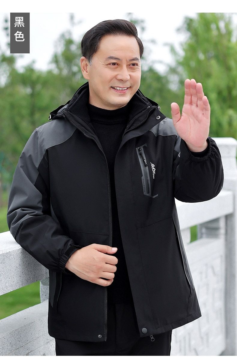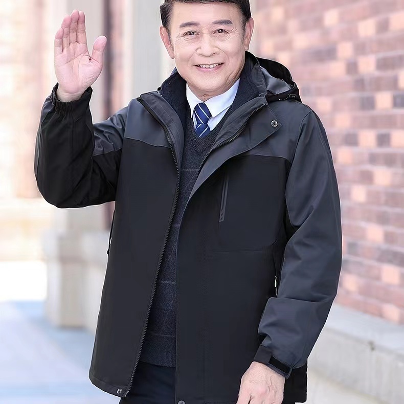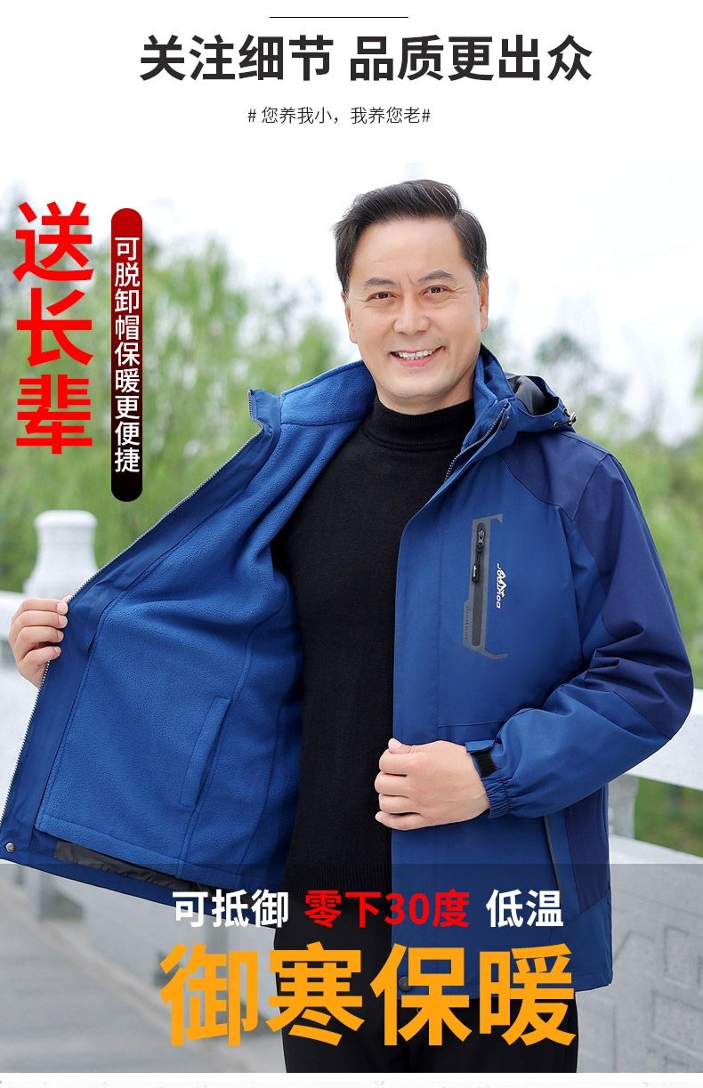 商品名稱:爸爸外套春秋季新款夾克可拆卸中老年人沖鋒衣男三合一爺爺上衣服