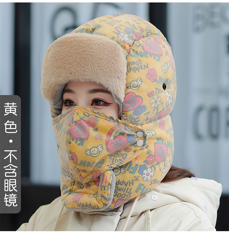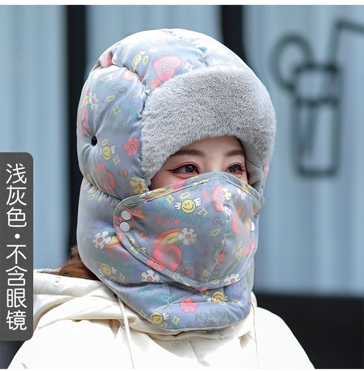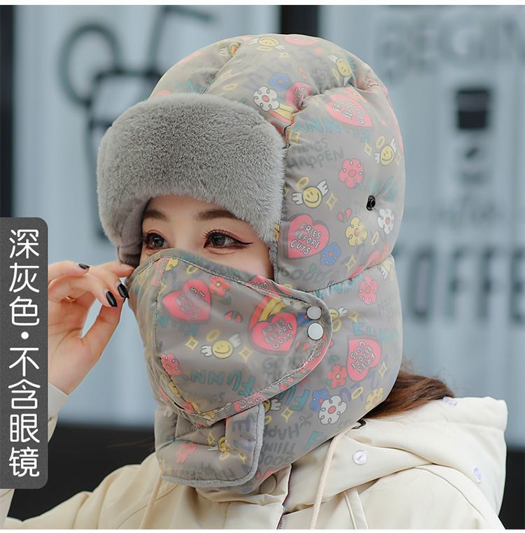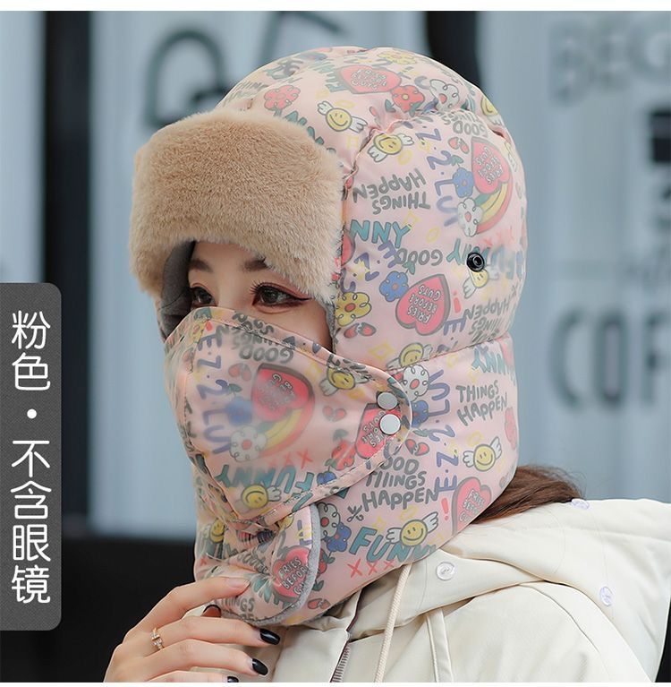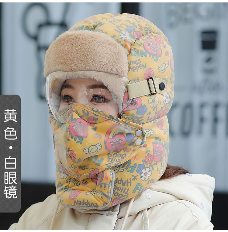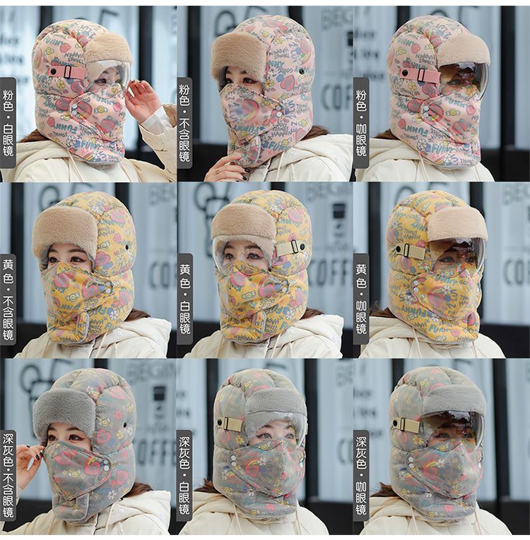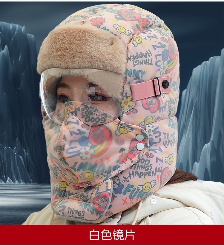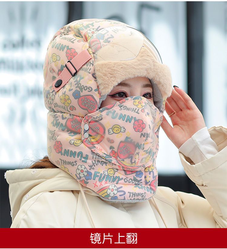 商品名稱:眼鏡帽子一體圍脖雷鋒帽女冬款騎車加絨加厚保暖防風(fēng)防寒時(shí)尚洋氣