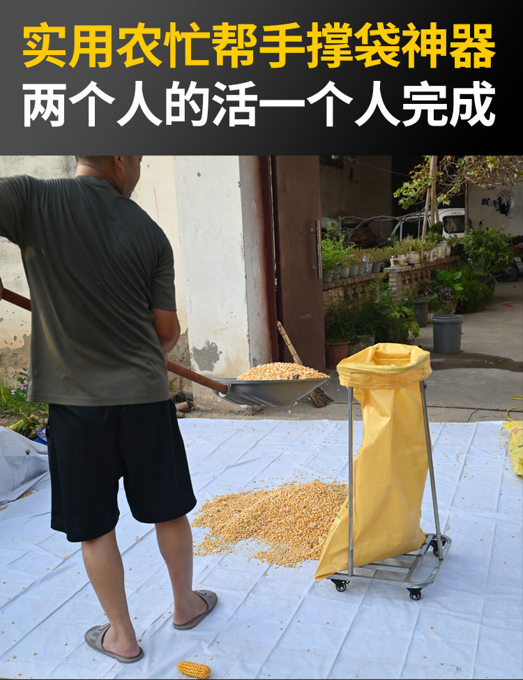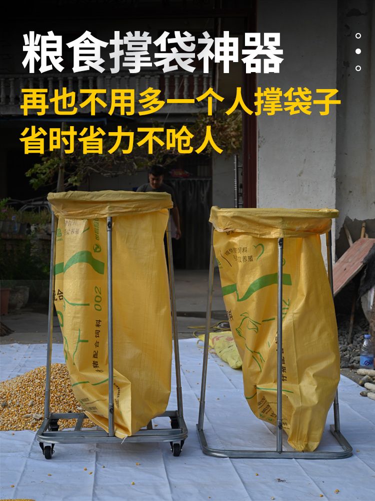 農用糧食裝袋神器曬場收谷玉米撐袋器移動打糧撐袋子帶滑輪支撐架