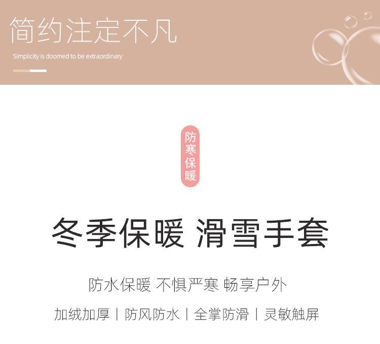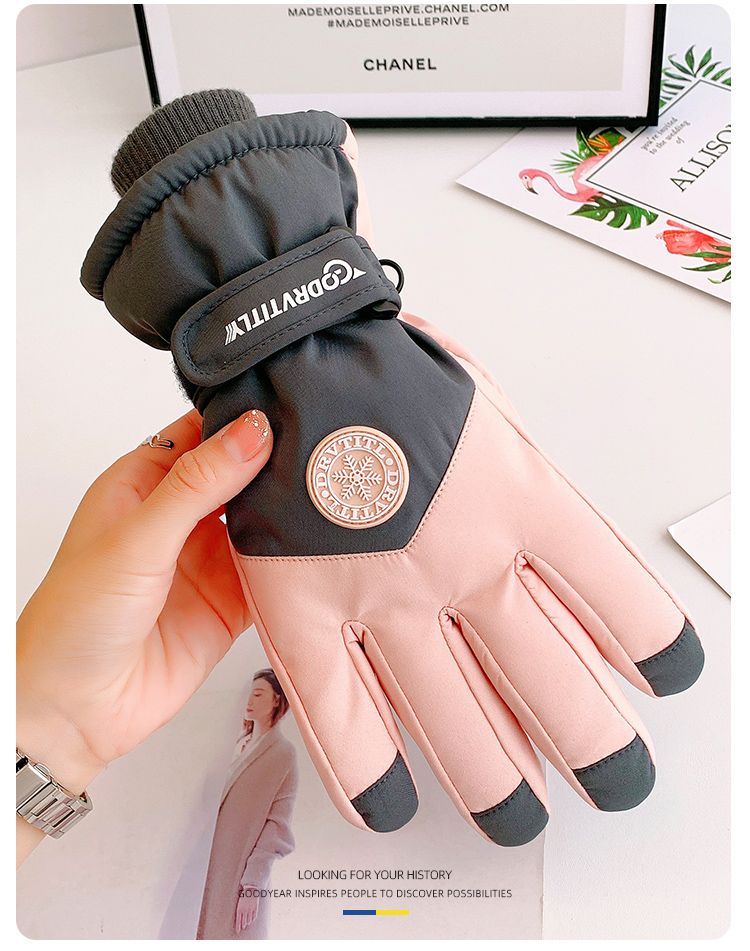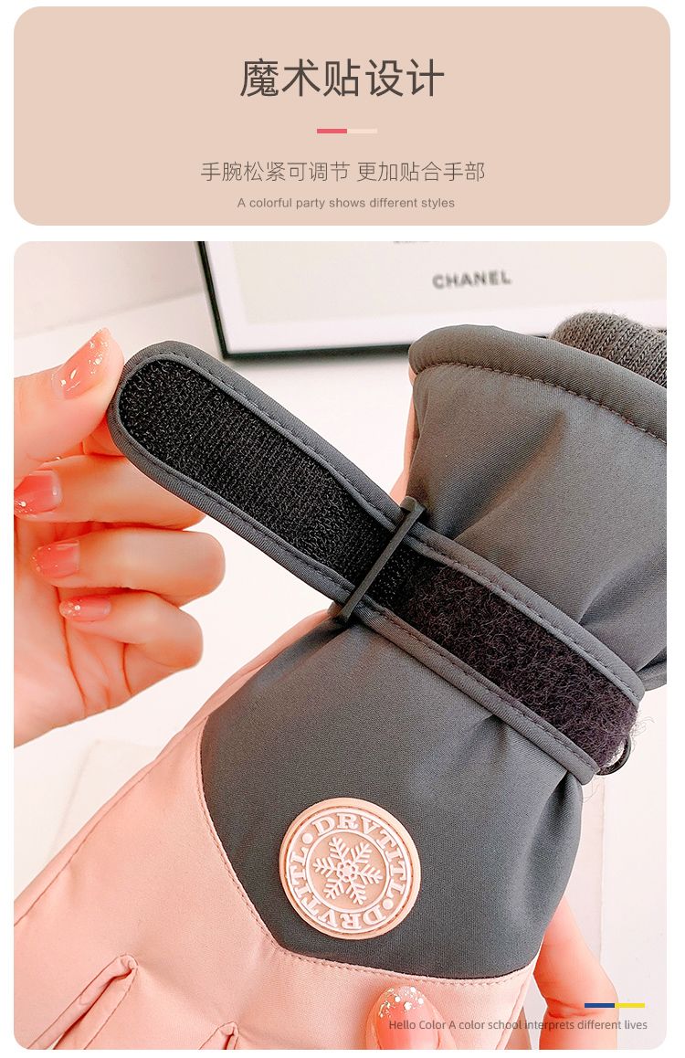 商品名稱:滑雪手套女冬季可愛加絨加厚可觸屏防水防寒保暖成人冬季騎車手套