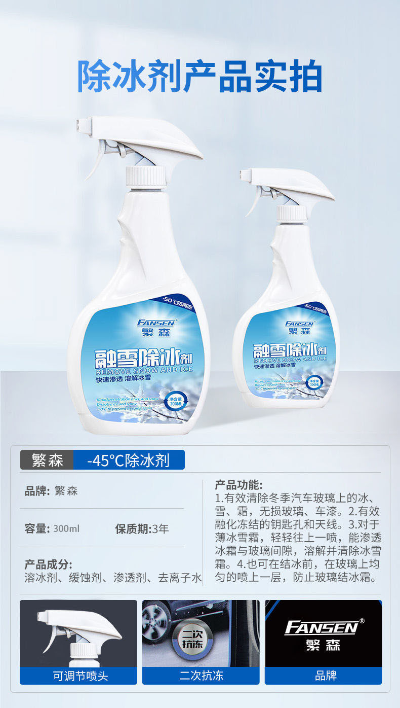 商品名稱:汽車融雪除冰劑車窗擋風玻璃化雪防結(jié)冰除霜除雪神器車用噴劑小鏟