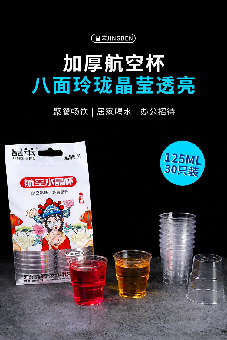 商品名稱:一次性航空杯硬質(zhì)透明加厚型塑料杯子水晶杯家用太空杯批發(fā)酒水杯