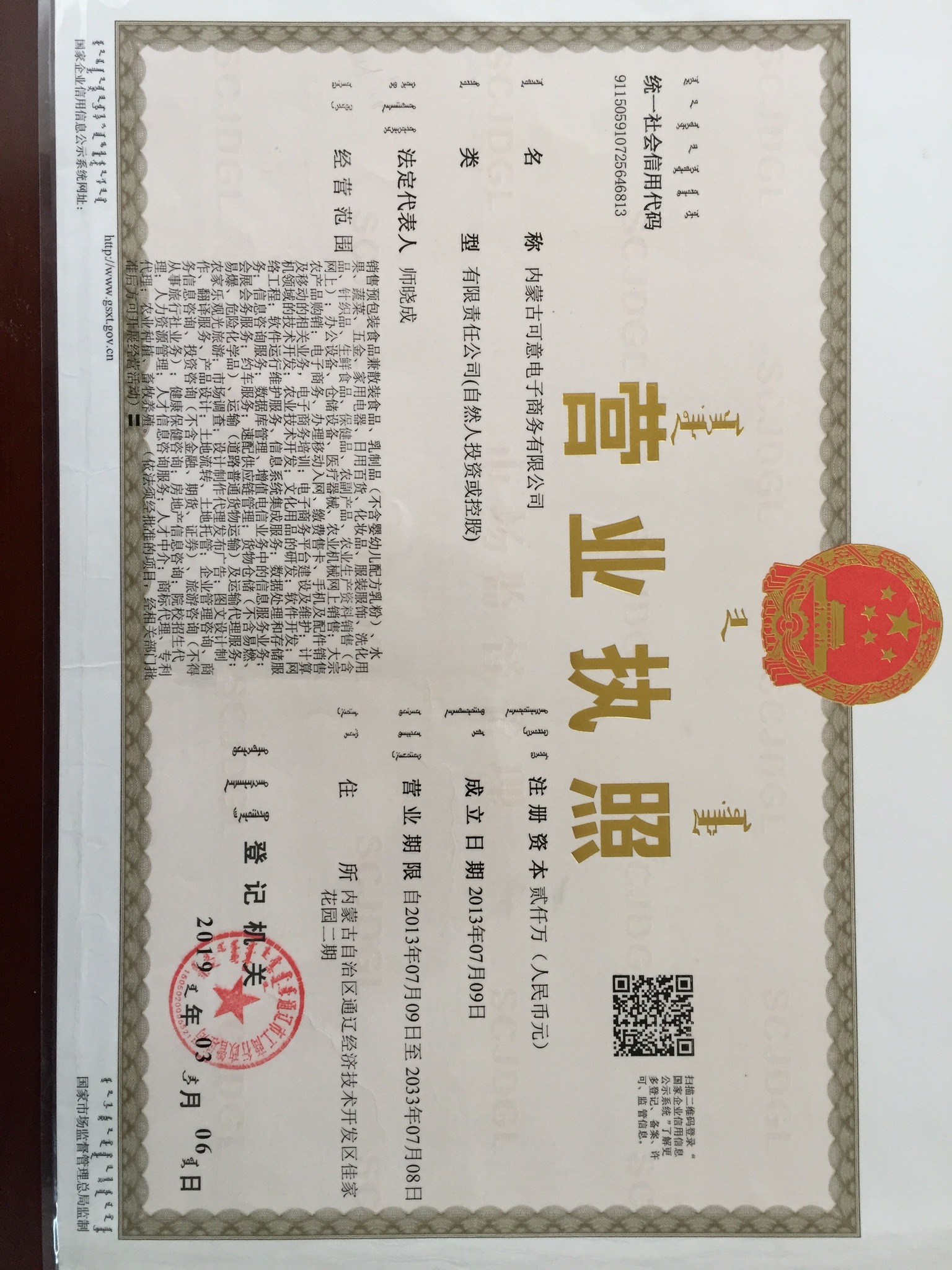 - 根據(jù)國家工商總局《網(wǎng)絡(luò)交易管理辦法》要求對網(wǎng)店營業(yè)執(zhí)照信息公示如下: